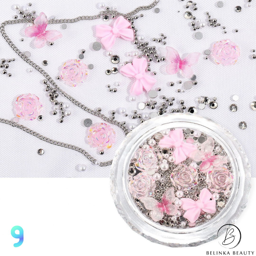 Mix krystalků různých druhů, velikostí, tvarů a barev pro nehtový design