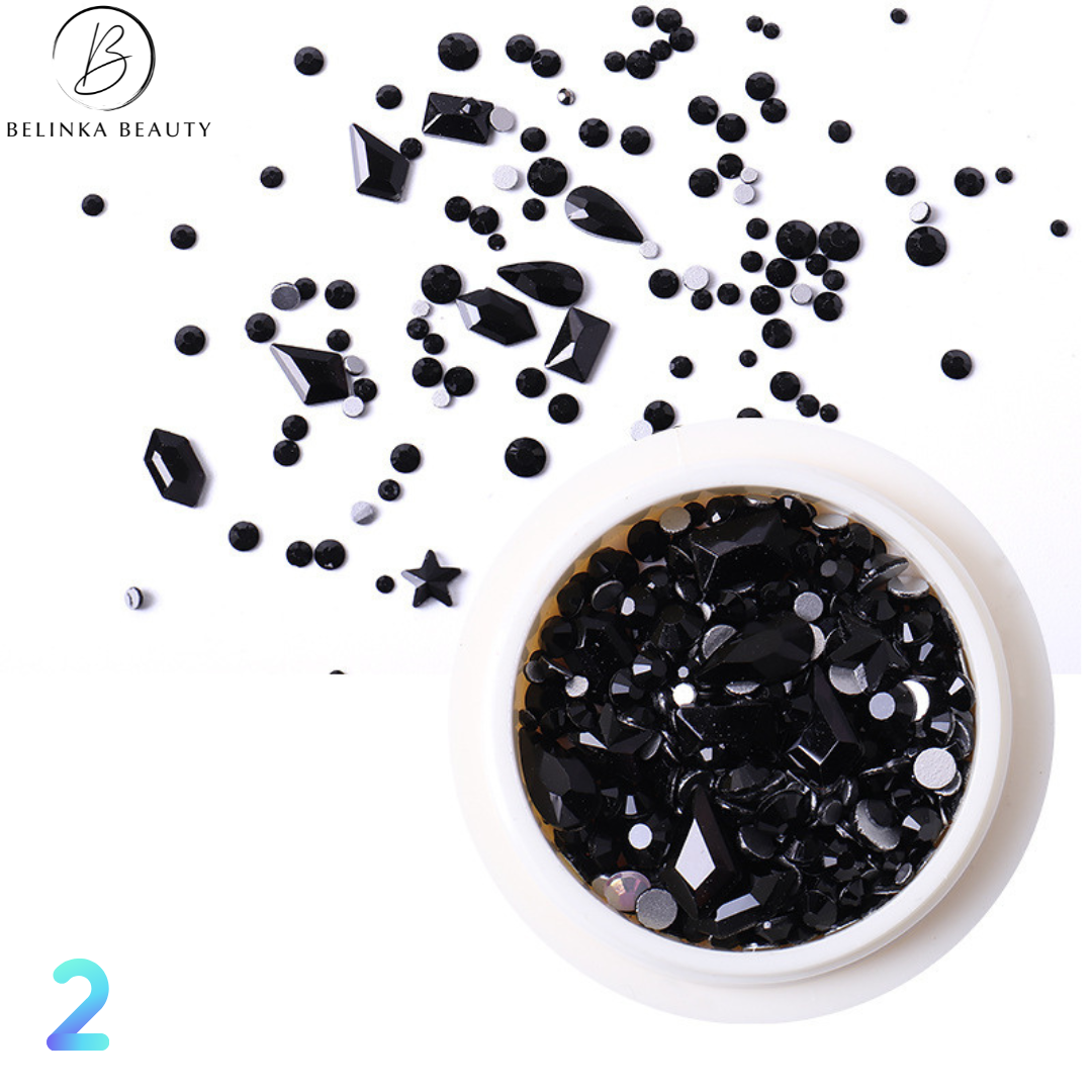 Create a unique nail design with our mix of crystals in a practical package with a transparent lid. This set includes rhinestones and nail decorations of different colors and shapes, which will allow you to complete your own style. The flat bottom side of the crystals makes them easy to place and fold into shapes and figures, while the top side boasts bright colors and a high shine. Ideal for professional and home manicure.