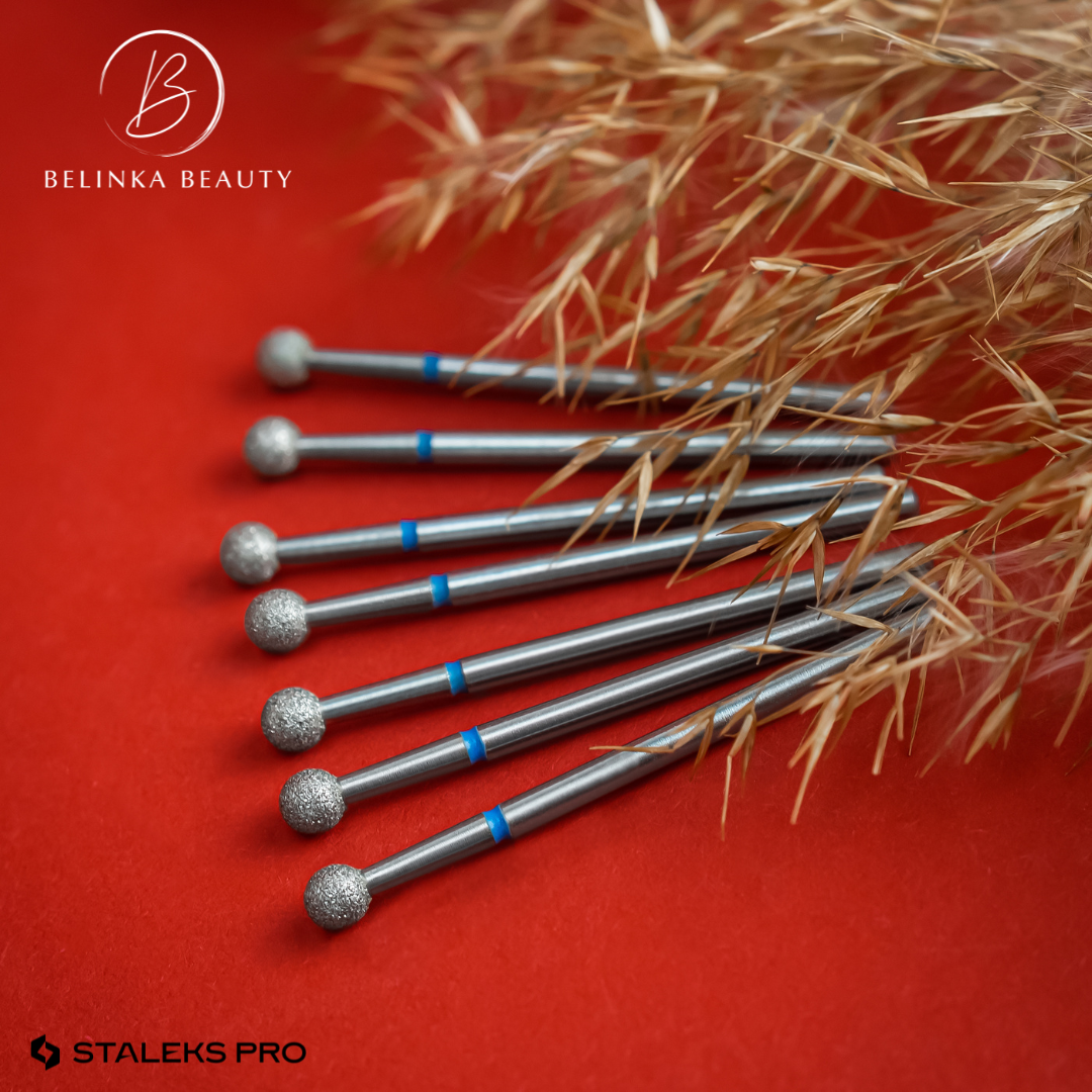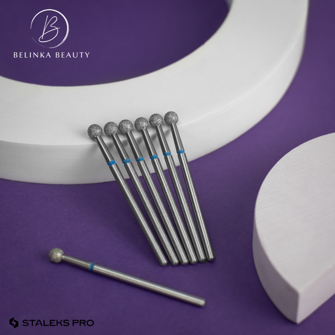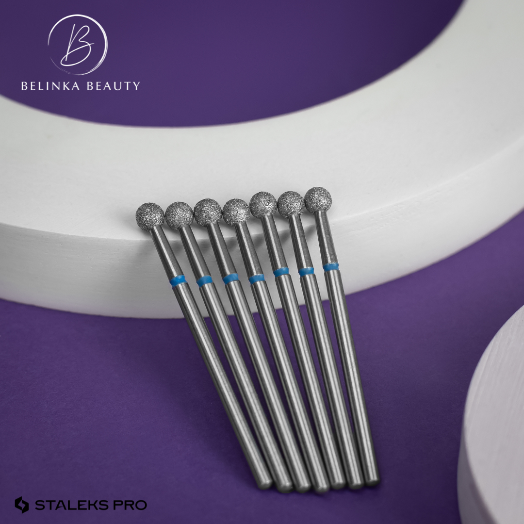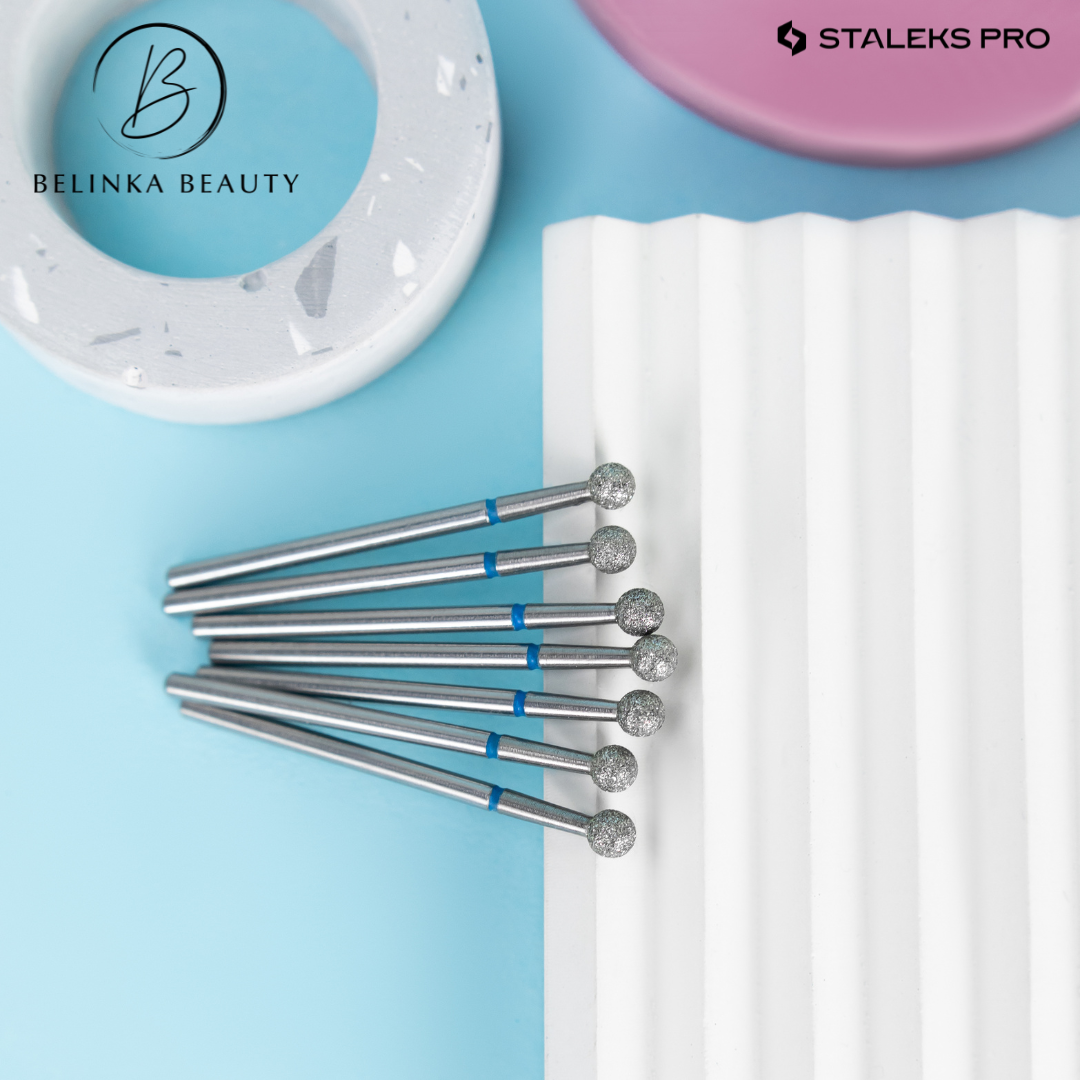 Staleks Expert Diamond Grinding Attachment Ball Blue 4mm - FA01B040 is a medium-grained diamond attachment in the shape of a ball with a diameter of 4mm . Suitable for treating rougher nail cuticles and skin, lifting and removing cuticles. Made of high-quality stainless steel . Thanks to the special method of applying diamond sand, the working part of the attachment is smooth and without dangerous protrusions.