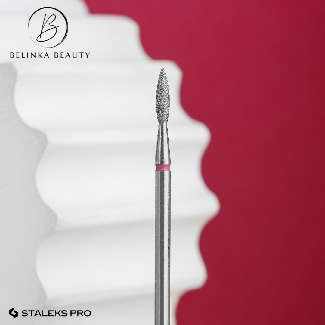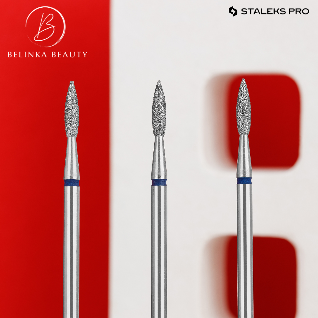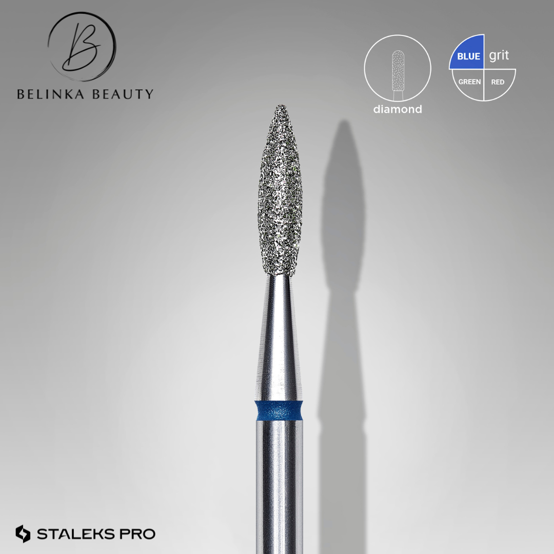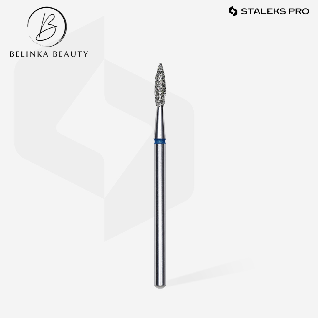 Staleks Expert Diamond Grinding Attachment Pointed Flame Blue 2.1mm/8mm - FA11B021/8 is a diamond attachment with medium grain in the shape of a pointed flame with a diameter of 2.1mm and a working part length of 8mm . Suitable for treating rougher nail cuticles and skin , lifting and removing cuticles. Thanks to the special method of applying diamond sand, the working part of the attachment is smooth and without dangerous protrusions.