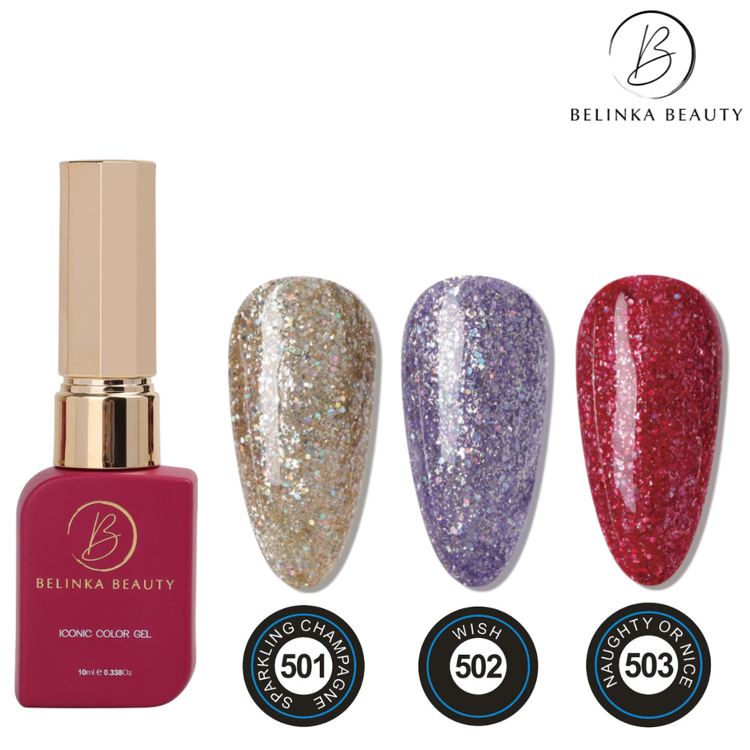 Die Glitter Gift Collection ist ein Trio bezaubernder Glitzergele mit dicker Konsistenz und Millionen Glitzer in verschiedenen Größen. Dank des hohen Glitzeranteils können Sie problemlos eine vollständige Abdeckung erzielen und alle mit Ihrer Maniküre begeistern. Machen Sie sich bereit für Highlights, die Ihnen den Atem rauben werden!