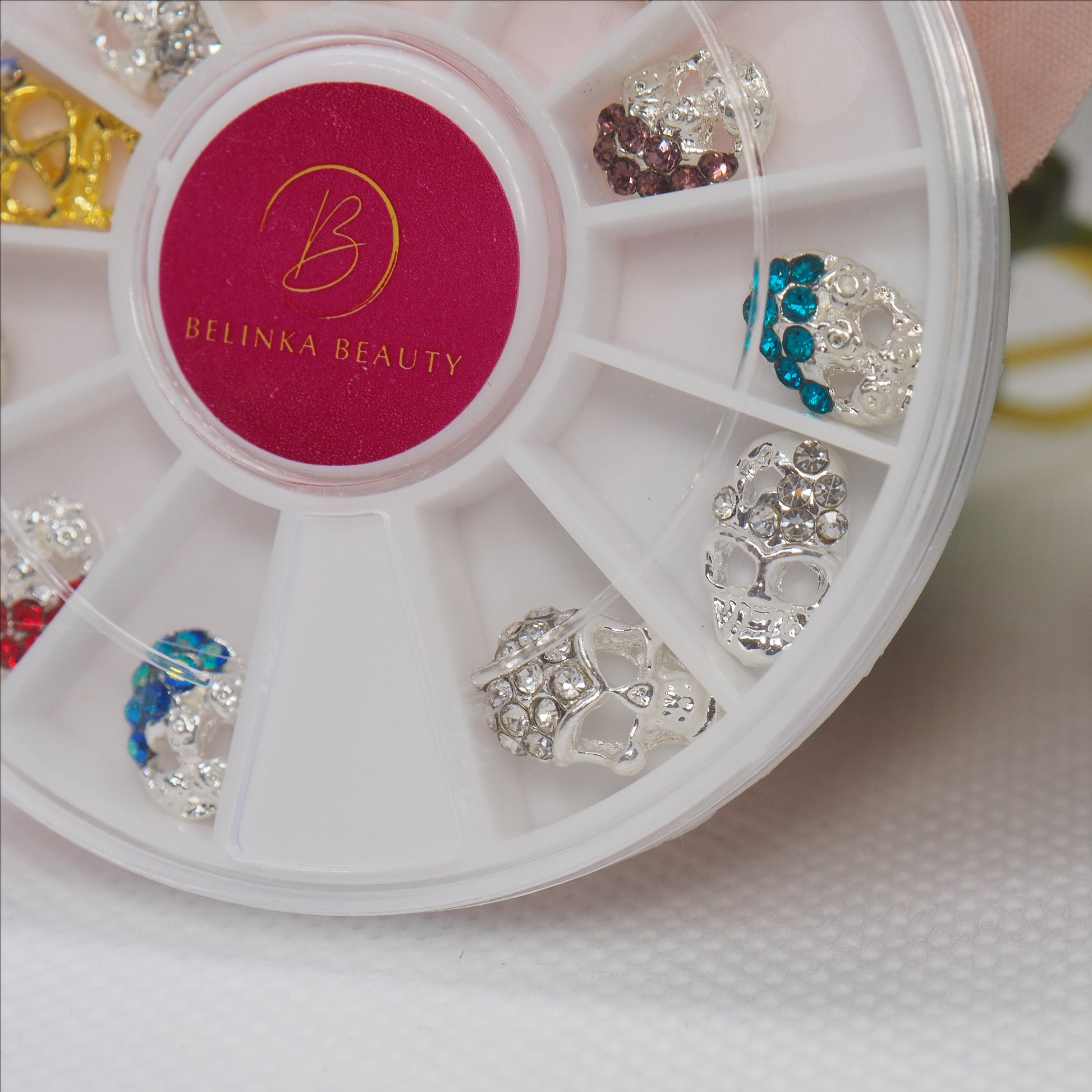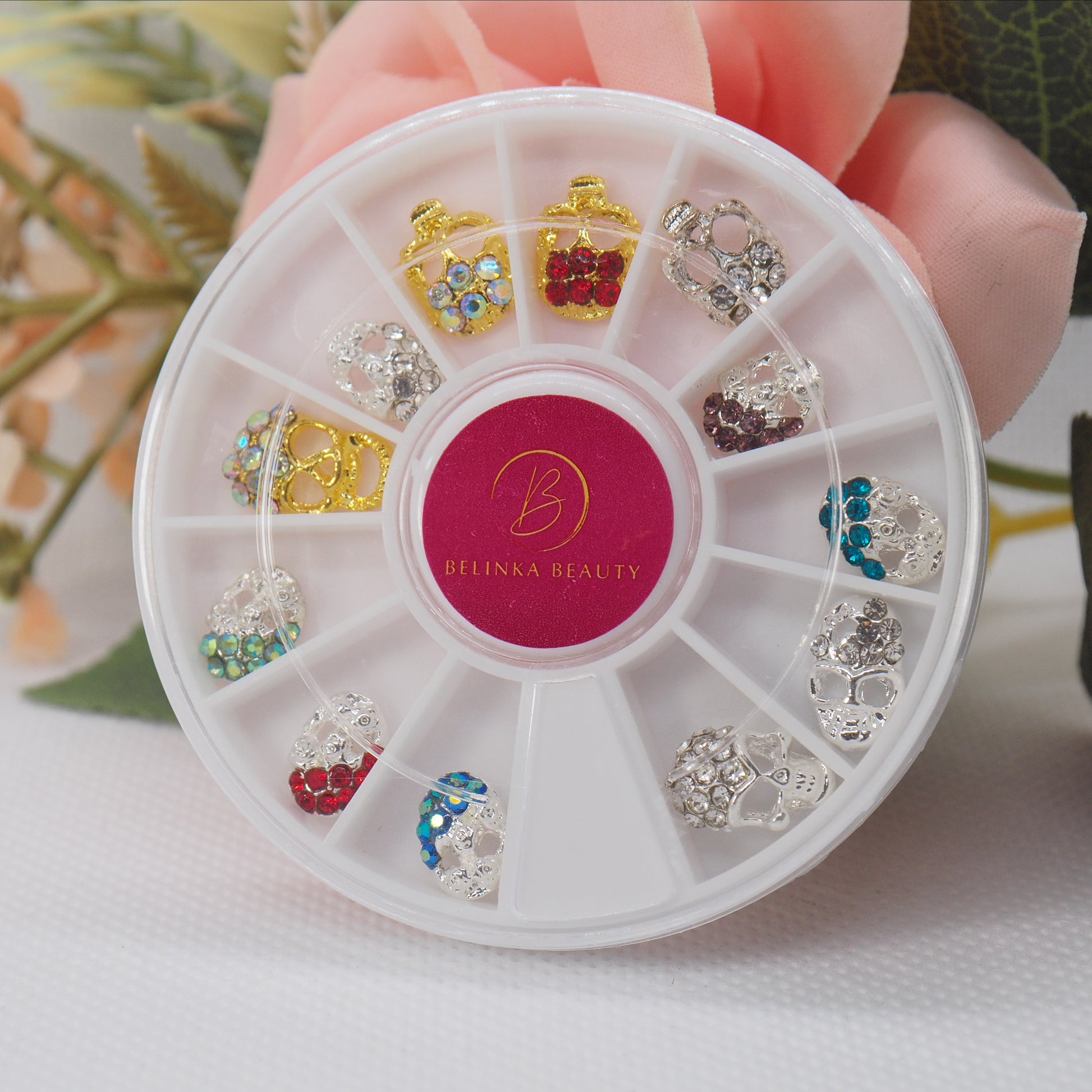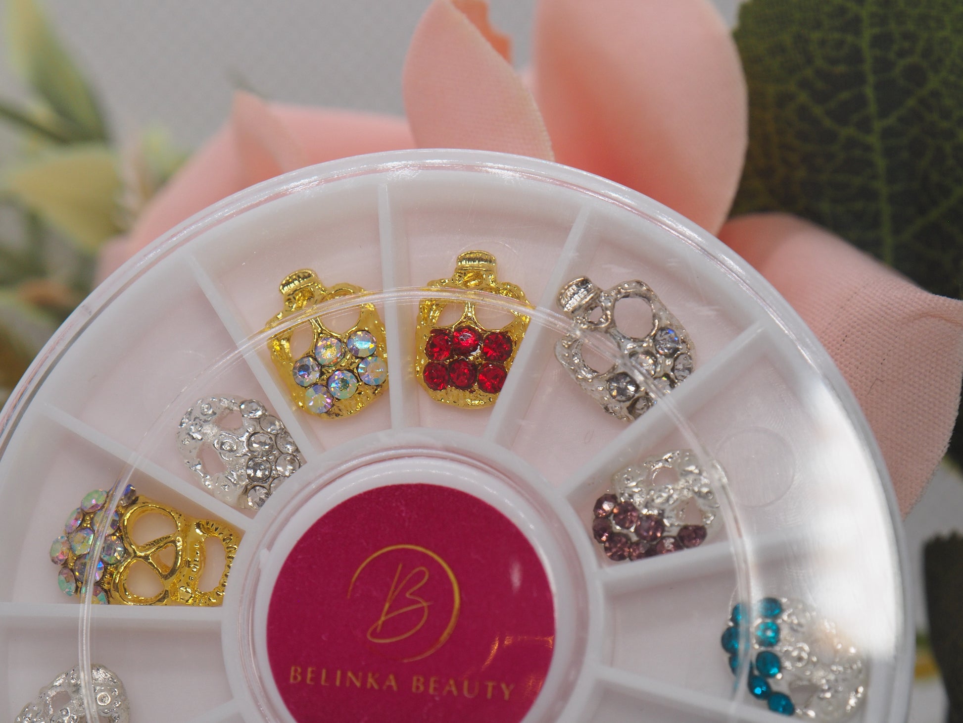 Das Karussell enthält 12 wunderschöne hochwertige Nagelschmuckstücke. Sie sind von unten sanft abgerundet, um sich besser an den Nagel anzupassen. Steine unterschiedlicher Art und Größe haben ein helles und klares Aussehen und einen diamantähnlichen Schliff, der deutliche Reflexe erzeugt. Die Mischung hochwertiger Metalle garantiert, dass der Schmuck lange Zeit glänzend und leuchtend bleibt, ohne dass es zu nennenswerten Farbveränderungen kommt. Es verdunkelt nicht, es wird nicht schwarz, es läuft nicht an und vor allem bleibt es schön bis zum nächsten Nagel-Makeover (mit unserem Iconic Fixing Gel)