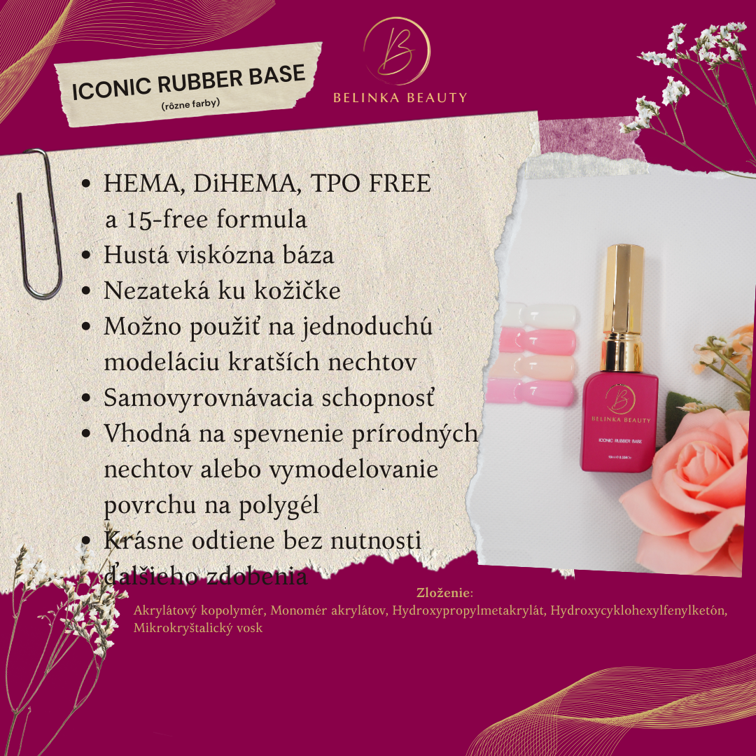 ICONIC RUBBER BASE je hustá viskózna báza ideálna na jemnú modeláž kratších nechtov. 💅