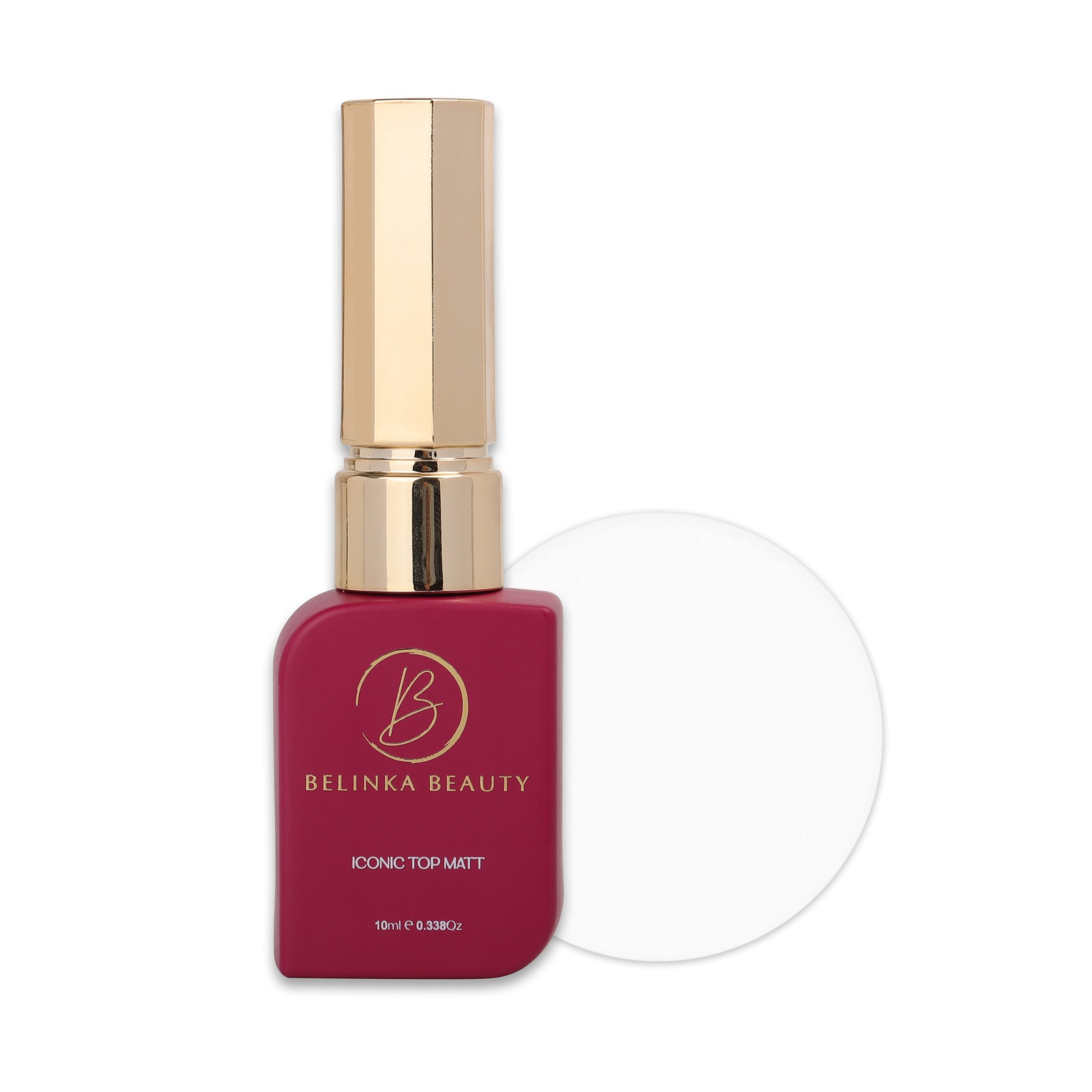 Iconic Top Coat Matt je bezvýpotkový vrchný matný záverečný krok Vašej gélovej manikúry, ktorý dokonale zaleje Váš dizajn do zamatovo matného finišu bez nechceného zatekania.