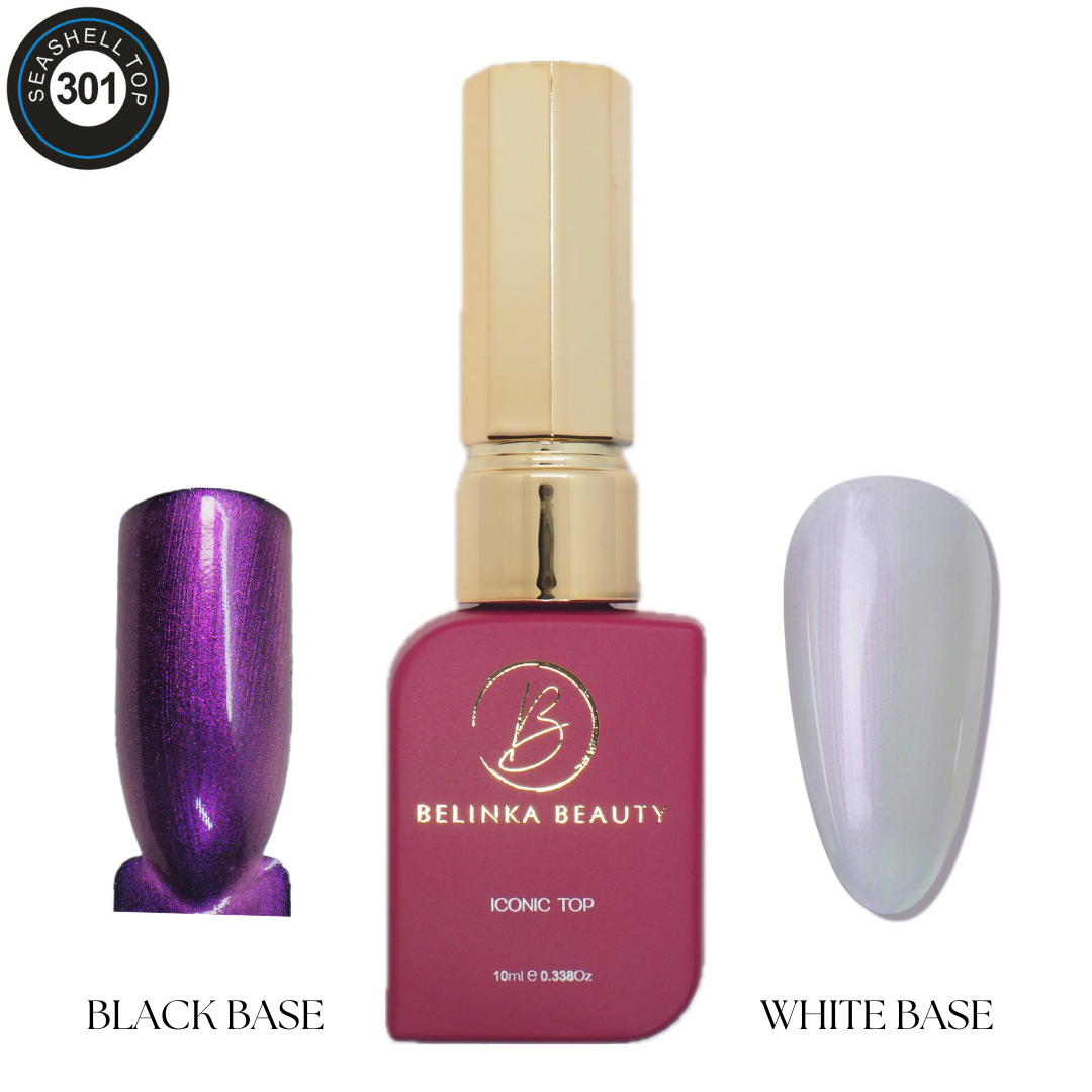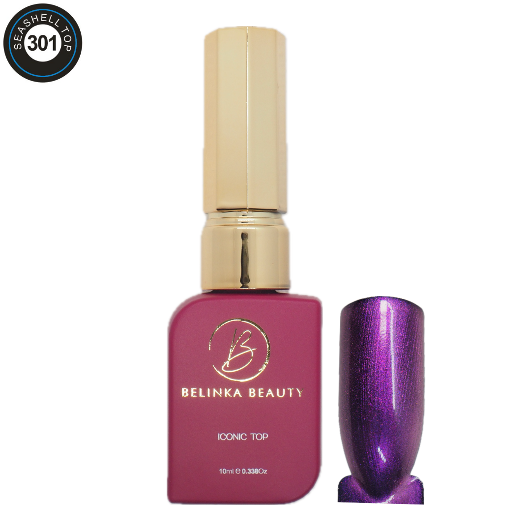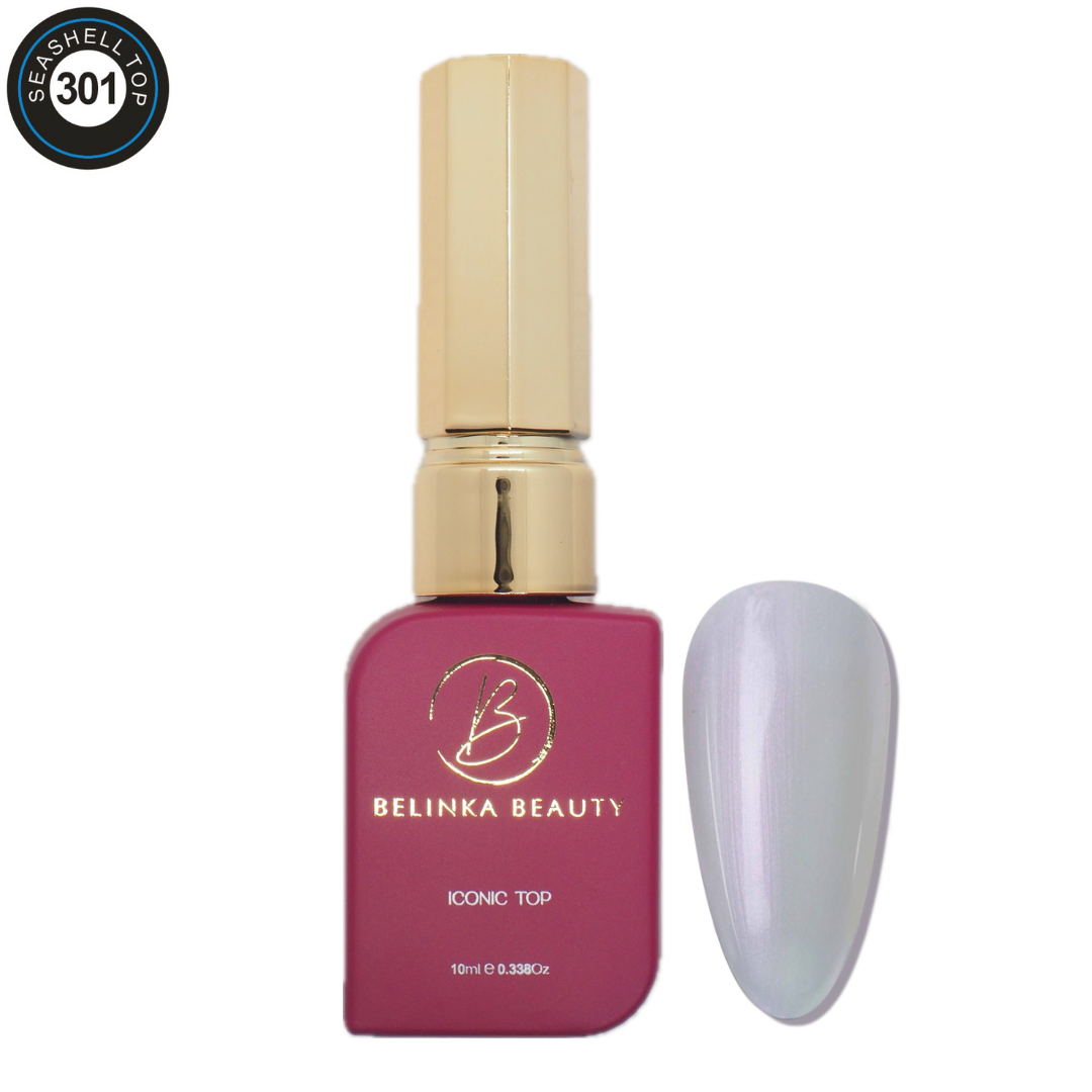 Seashell Iconic Top Coat je unikátny povrchový géllak, ktorý dodá Vašim nechtom neodolateľný perleťový efekt inšpirovaný krásou morských mušlí. Tento priehľadný top coat obsahuje jemné iridescenčné čiastočky, ktoré vytvárajú efekt trblietavých vĺn na povrchu nechtu.